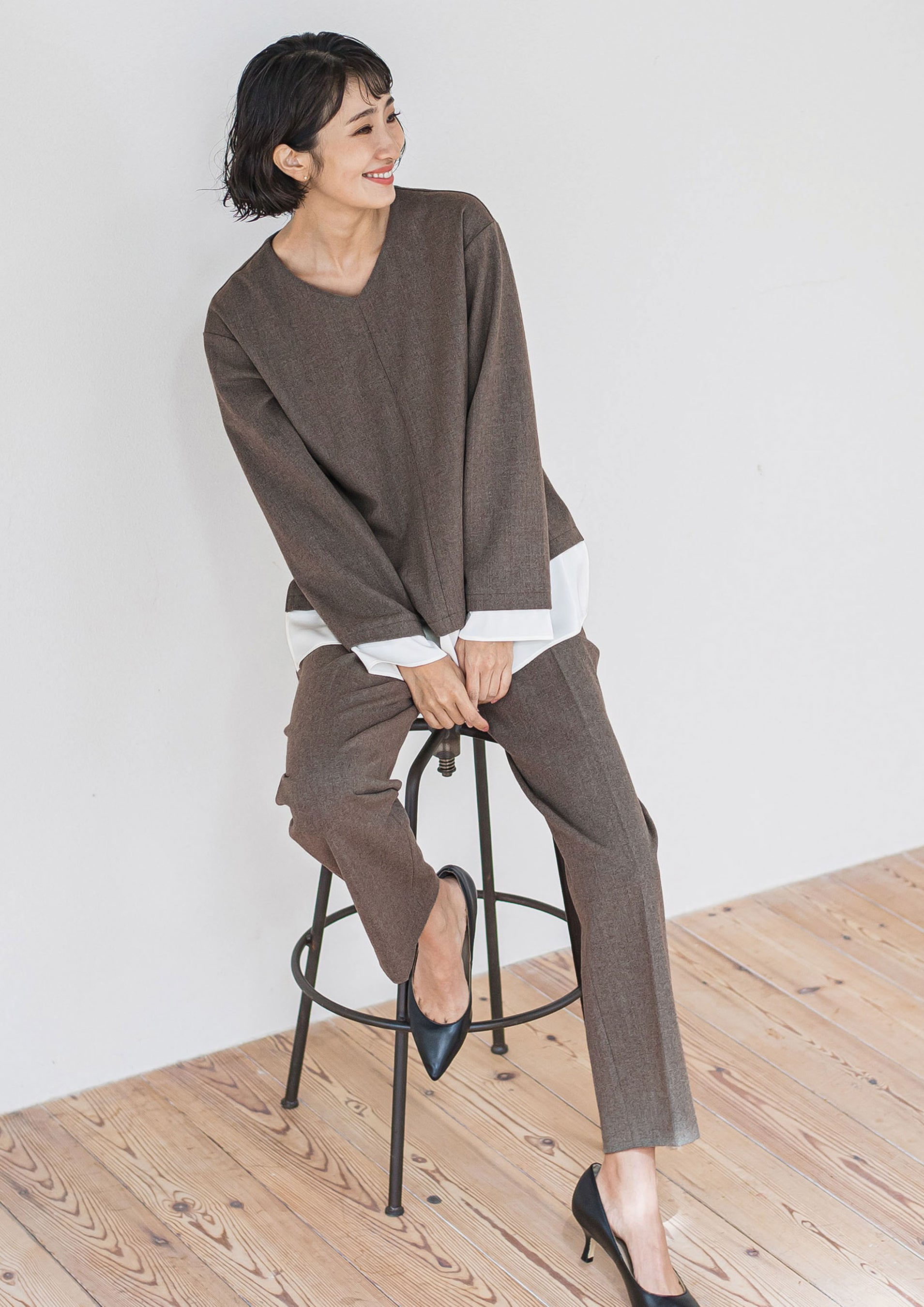 着心地の良さと、さりげなく時代の気分を体感できるシンプルで洗練された大人スタイル。ー 快適なのにスタイリッシュ ー仕事をもつ女性たちが、簡単に毎日きれいでいられる上質で機能性に優れたマテリアルを厳選しパンツスタイルにこだわり抜いた、タイムレスなデイリースタイルを提案します。