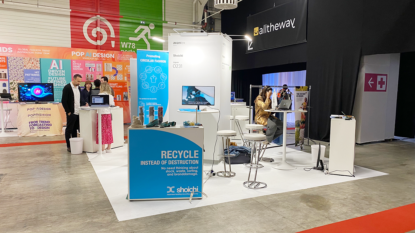 2025年9月15-17日に開催されたTexworld Paris 2025に、(株)shoichi(大阪/東京,HP:https://shoichi.co.jp/sustainable/)はリサイクルサービス特化で初出展しました。会期中のブース来訪は30社/15か国、うち意思決定者は60%。とりわけ、“シューズ/バッグの解体・再資源化”への関心が36.7%、“ポリ→ポリ”やアップサイクル相談が16.7%を占め、非衣類領域を含む資源循環ニーズの高まりを確認しました。当社は年間約600tの処理体制とトレーサビリティ運用(CCTV・写真報告・ロット管理)を組み合わせ、ブランド毀損対策を前提に、解体~再資源化を安全・確実に提供しています。