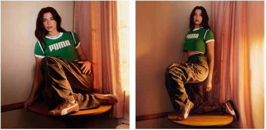 本キャンペーンは、プーマのクラシックなデザインを新しい世代に再提案することを目的とした「Rewrite the Classics(リライト ザ クラシックス)」 キャンペーンの一環として展開されており、ロープロファイルスタイルのSPEEDCAT にスポットライトを当て、Dua Lipaのスタイリッシュな姿を通じて、レーシングカルチャーを現代のストリートスタイルとして紹介しています。公開されたビジュアルでは、ブラウンのSPEEDCATを着用し、足元がスピード感あふれる自由な冒険心を体現しています。