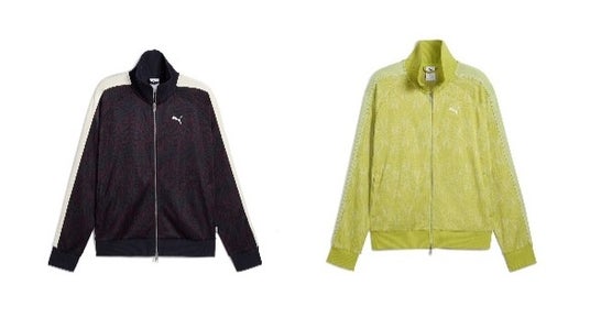 「NEVERWORN」コレクションは、プーマのクラシックなトラックスーツに、過去の総柄プリントを大胆に取り入れ、オーバーサイズのシルエットと鮮やかなライムグリーンとクラシックなブラックのカラーリングで展開します。