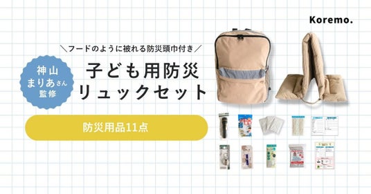「Koremo. 子ども用防災リュックセット」は、共働き家庭の「もしも」に備え、お子様の安全を守るための防災アイテムを詰め込んだ商品です。本商品が、ご家庭の防災意識を高め、万が一の事態に備えるきっかけになりましたら嬉しいです。