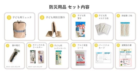 防災士監修の必要11アイテムが詰め込まれた、「Koremo.子ども用防災リュックセット」