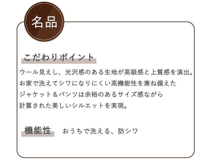 特設サイトでは、暖かさや温もりを感じつつ、毎日でも着たくなるようなお手入れのしやすさが魅力の機能服、オリジナル商品の「名品アイテム」を公開いたしました。