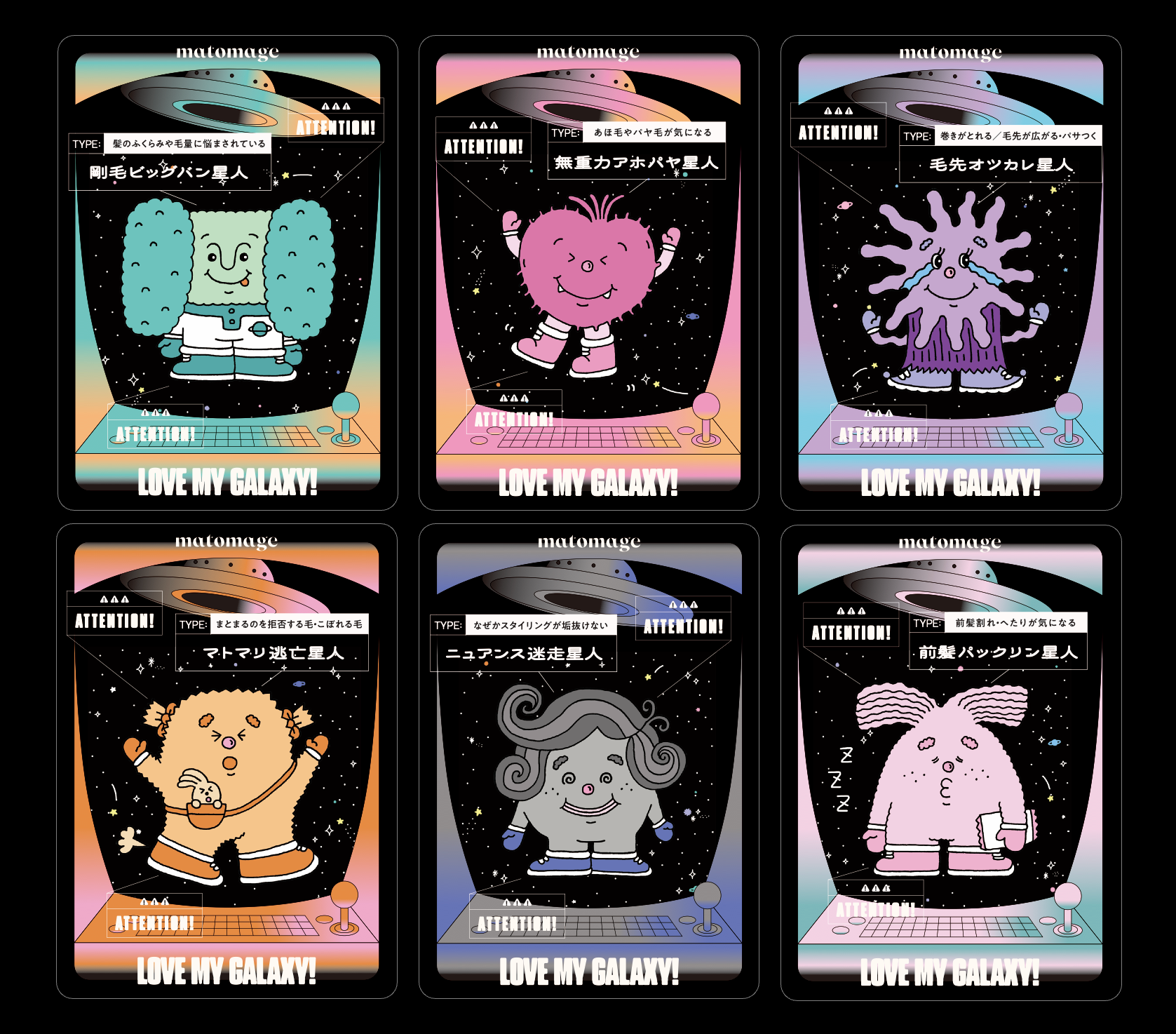 今回のイベントは「宇宙」がテーマとなっているため、髪の毛にまつわるお悩みを「無重力アホパヤ星人」「剛毛ビッグバン星人」など、全6種のキャラクターとしてチャーミングに表現。各キャラクターごとに、おすすめの商品と使用方法が一目で分かるパーソナライズカードを配布いたします。