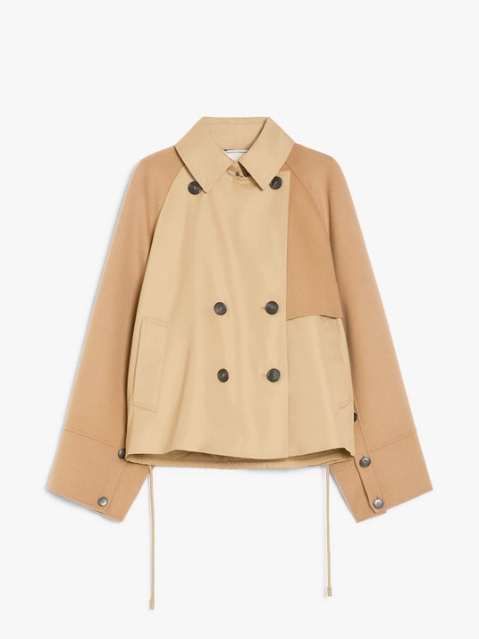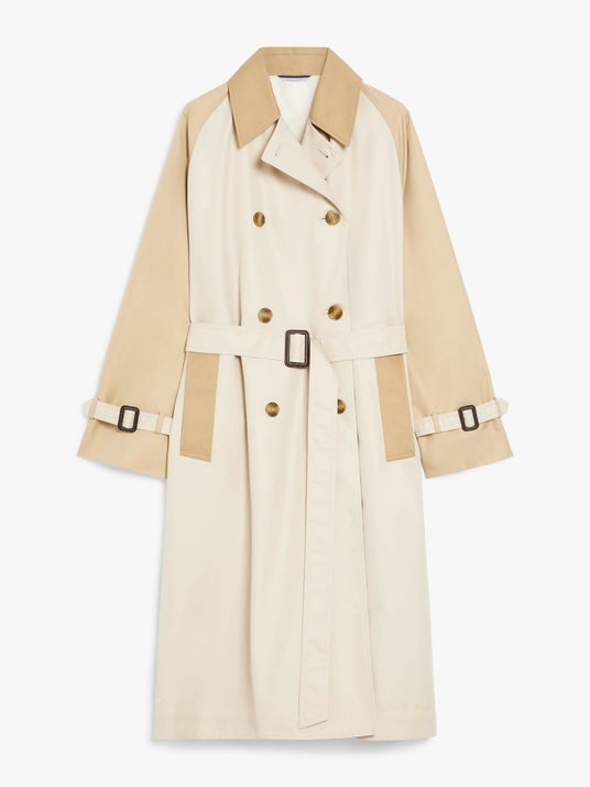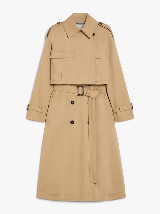 この春、ウィークエンド マックスマーラは、伝統と現代的な感性が響き合うトレンチコートの新作を発表します。スタイルは、マイクロクロップド丈から動きのあるショート丈、流れるようなマキシ丈までさまざまで、それぞれにフード、絞ったドローストリングウエスト、ベルスリーブ、ウールとコットンのギャバジンの組み合わせなどの特別なディテールが施されています。さらに、バックに「WEEKEND」 のロゴを配し、縁をテーピングで仕上げたリバーシブル トレンチが、コレクションのハイライトとして登場します。