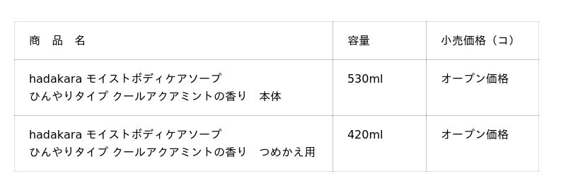 そこで今年も『hadakara モイストボディケアソープ ひんやりタイプ クールアクアミントの香り』を数量限定で発売いたします。