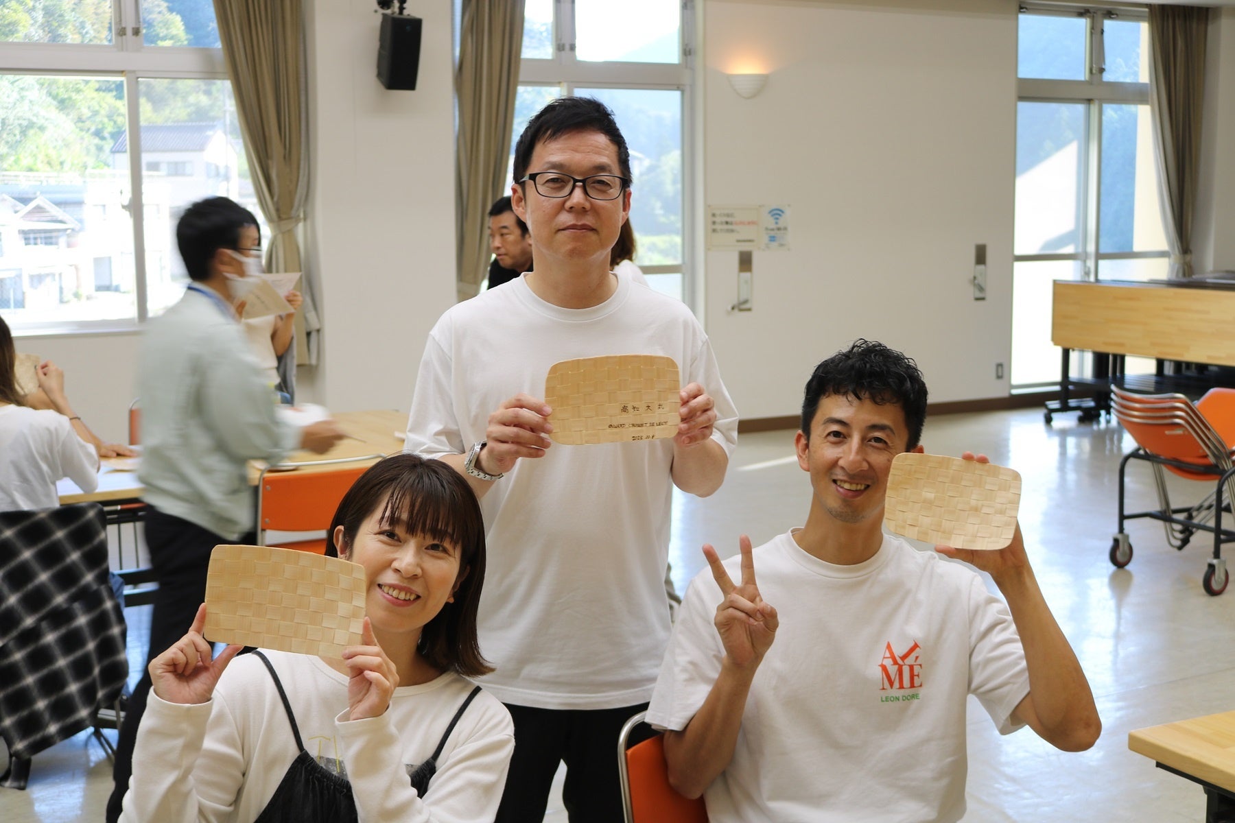 今回の活動は、当社グループの社員23名が参加し、10月9日(木)、10日(金)の2日間で実施しました。間伐が必要な樹木の伐採作業に従事したほか、高知県林業環境政策課による森林の役割や間伐活動の意義などについての講義受講、ヒノキからトレイを製作するワークショップ、地域の方々との交流会を行いました。