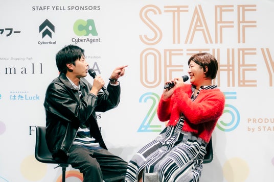 藤本さんは、「私がSTAFF OF THE YEARに初めて参加するので緊張しています。リラックスしながら程よい緊張間で楽しんでもらいたいです。」とコメント。そして、コットンのお二人は、「僕らも賞レースに参加しているので緊張する気持ちがとても分かります。なので、決して悪目立ちせず、プレーンなお客さんに徹したいです。」と西村さん。「お客さんの設定に私達が笑いを添えるだけ、スタッフが輝ける場を提供したいです。」ときょんさんがコメント。そして最後に、「お客さんにその人らしい自信を与える、心を晴れやかに時間を提供するという気持ちを大切に楽しんでいただきたいです。」とアン ミカさんのコメントで締めくくりました。