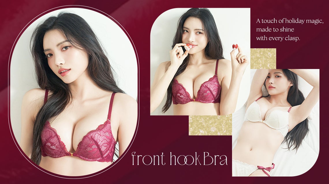 - 大好評のフロントホックブラから、ワインレッドがポイントのホリデーカラー登場