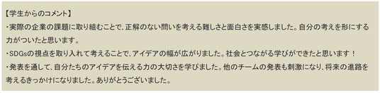 さらに、使用後のパックシートはふきんなどとして再利用できる素材を使うというSDGsの観点も取り入れた発表で、斬新なアイデアに感心しました。