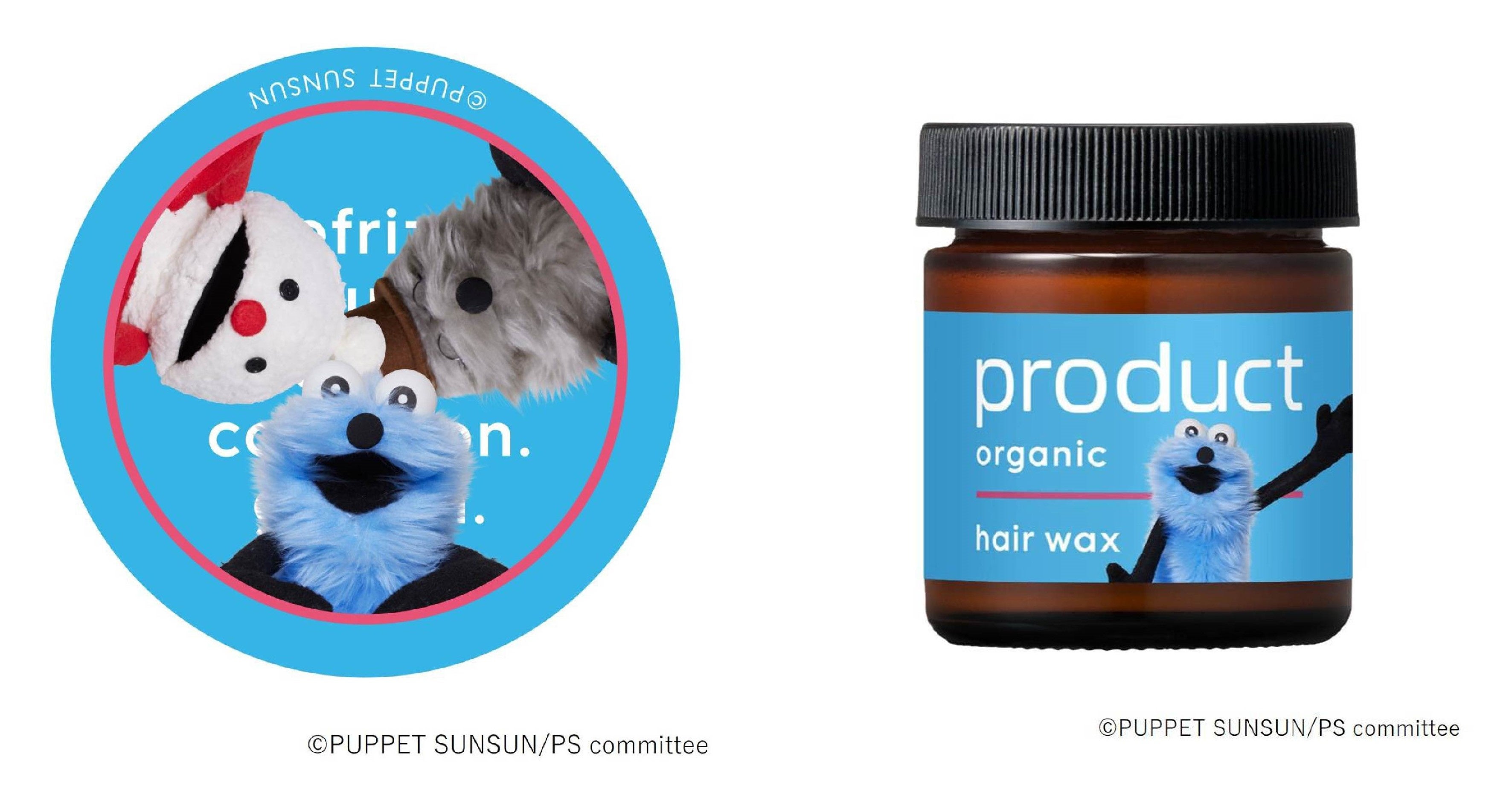 本コラボは、「product play with PUPPET SUNSUN」をテーマに、自然由来原料でつくられた髪や環境にやさしい人気商品であるヘアワックスの限定ラベルで展開し、ヘアスタイリングに遊び心をプラスするという想いを込め、楽しさに満ちた世界観をお届けします。