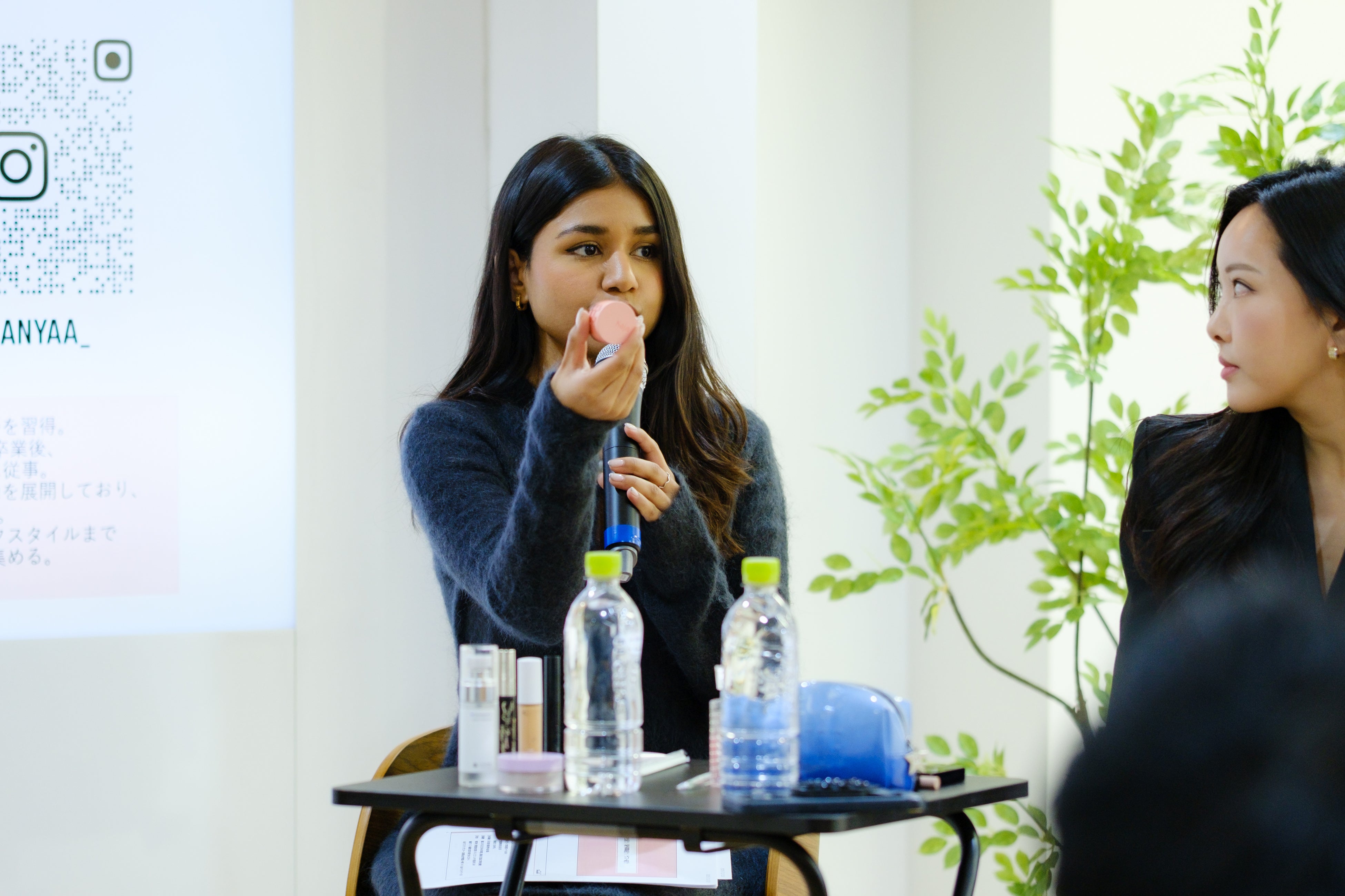 トークショーでは、イベントのゲストとしてお招きした、グローバルに活躍するインフルエンサーのAyumi HillsさんとAnanyaさんから日本コスメの魅力について具体的な体験が共有されました。Ananyaさんは、アメリカで長年使用していた毛穴パックが実は日本ブランドだったと知ったエピソードや、日本の日焼け止めの品質の高さから「日本製=高品質」という信頼が定着したと語りました。