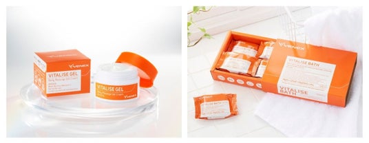 休養時専用「リカバリーウェア」を提供してきたベネクスが新たに提案するのは、生命や活力を意味する「VITAL」と、増やす・高めることを意味する「RISE」を合わせ、休養を通して毎日を元気に過ごすための活力向上に繋げてほしいと願いを込めて開発した、新商品『VITALISE』シリーズ。お風呂上がりやマッサージの時に肌に塗布して使用する『VITALISE GEL』、体の冷えが気になったり、疲れを感じる時におすすめの入浴剤『VITALISE BATH』の2種類です。
