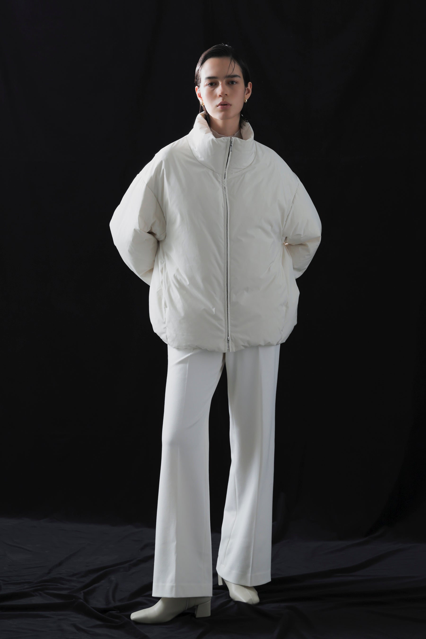 ボリューム感のあるフォルムダウンやコートも白で揃え、冬のホワイトコーデを楽しめるラインナップです。