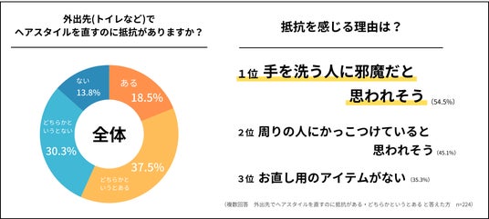 ◆外出先でヘアスタイルを直しづらい理由は「手を洗う人に、邪魔だと思われそう」。