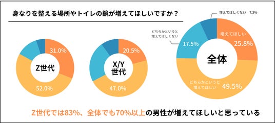 ■Z世代を中心に7割以上の男性が、身なりを整える場所やトイレの鏡が増えてほしいと回答。男性の隠れたお直しニーズの高さが明らかに。