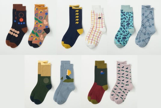 ▲ワタミユさんの作品「散策」(左) をソックスのデザインに