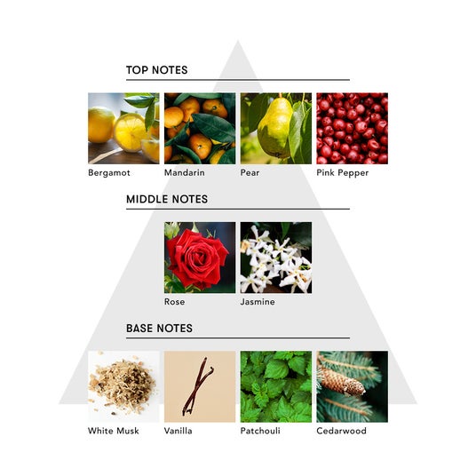 トップは、ペアーや瑞々しくフルーティーな香りにピンクペッパーがアクセントとして香り、やがてまったりとした甘さを放つローズやジャスミンがミドルで広がります。ホワイトムスクやバニラの濃厚な甘さをスパイシーなシダーウッドの余韻が、眠りの森の入口を開きながら、心や脳を柔らかく解きほぐしていく。ライトシプレ調の香りが、まるで、宙を浮いているかのような夢心地気分を誘い、一日の疲労を癒すように睡眠空間を整え、上質な眠りへ導きます。