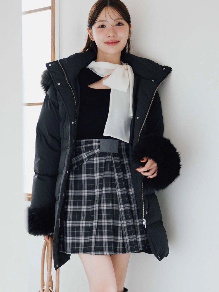 パウダリーな生地とボリュームたっぷりのダウン、袖口に隠れたリブで着やすさと防寒を兼ね備えています。