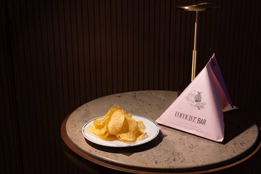 フードは「L’OFFICIEL Monaka Foie Gras Mousse」「L’OFFICIEL Cheese」「L’OFFICIEL Chips Truffle Flavor」など、リュクスなバーフードをご用意しました。