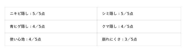 クマ・シミ・ニキビ・青ヒゲのカバー力が10製品中1位!
