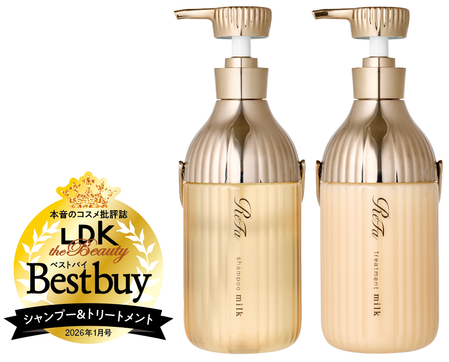 ReFaに現代人の5大ハイダメージに着目した新ラインが仲間入り。「しっとりしつつも汚れ落ちが見込める洗浄成分に、牛乳由来のタンパク質などの保湿成分も加えたバランスのいい配合です」とプロも絶賛! ふんわり泡と伸びのいいトリートメントで、使い心地も快適です。乾かした直後から指通りがよく、キレイなツヤのある仕上がりが翌朝までしっかり持続。髪が若返ったような印象が叶います。