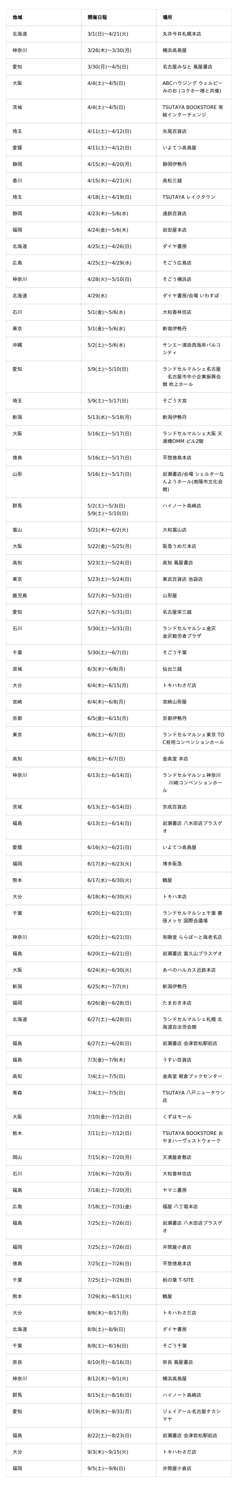 全国展示会スケジュール