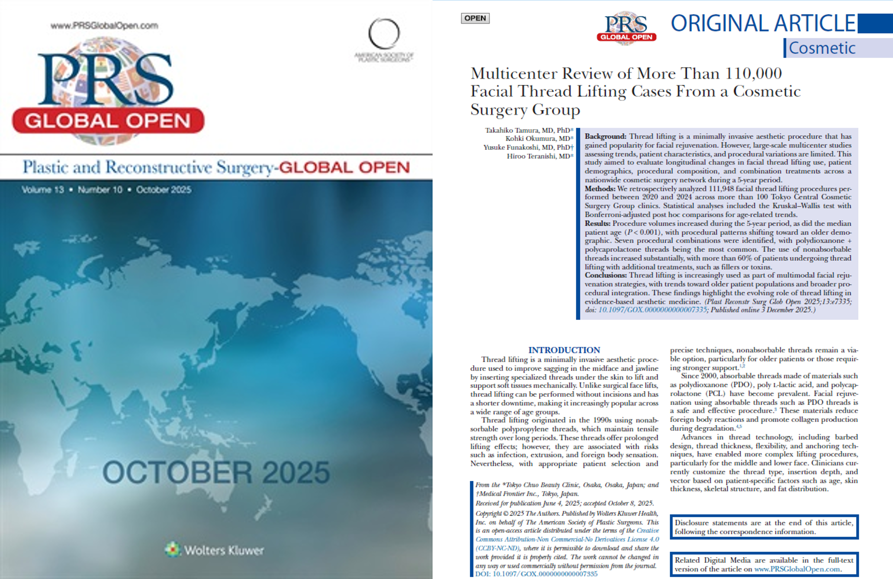 同論文は2025年11月、国際美容外科学術誌「Plastic & Reconstructive Surgery-Global Open」に掲載されました。