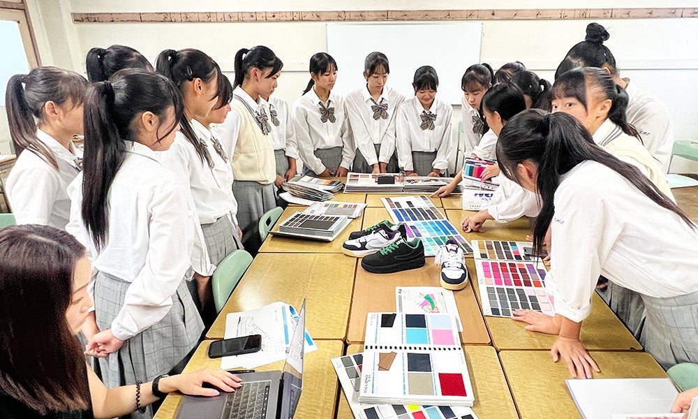 今回のDCCで「㒯湧(はなになって)」と題した見事なダンスを披露された、登美丘高等学校 ダンス部の皆様と、9月下旬にキックオフミーティングを行いました。ミーティングでは、FILAの全面協力のもと、オリジナルダンスシューズのカラーリングや素材選びなどに関する説明が行われました。部員の皆様は自分たちのオリジナルシューズの完成形をイメージしながら、熱心に意見を交わしていました。