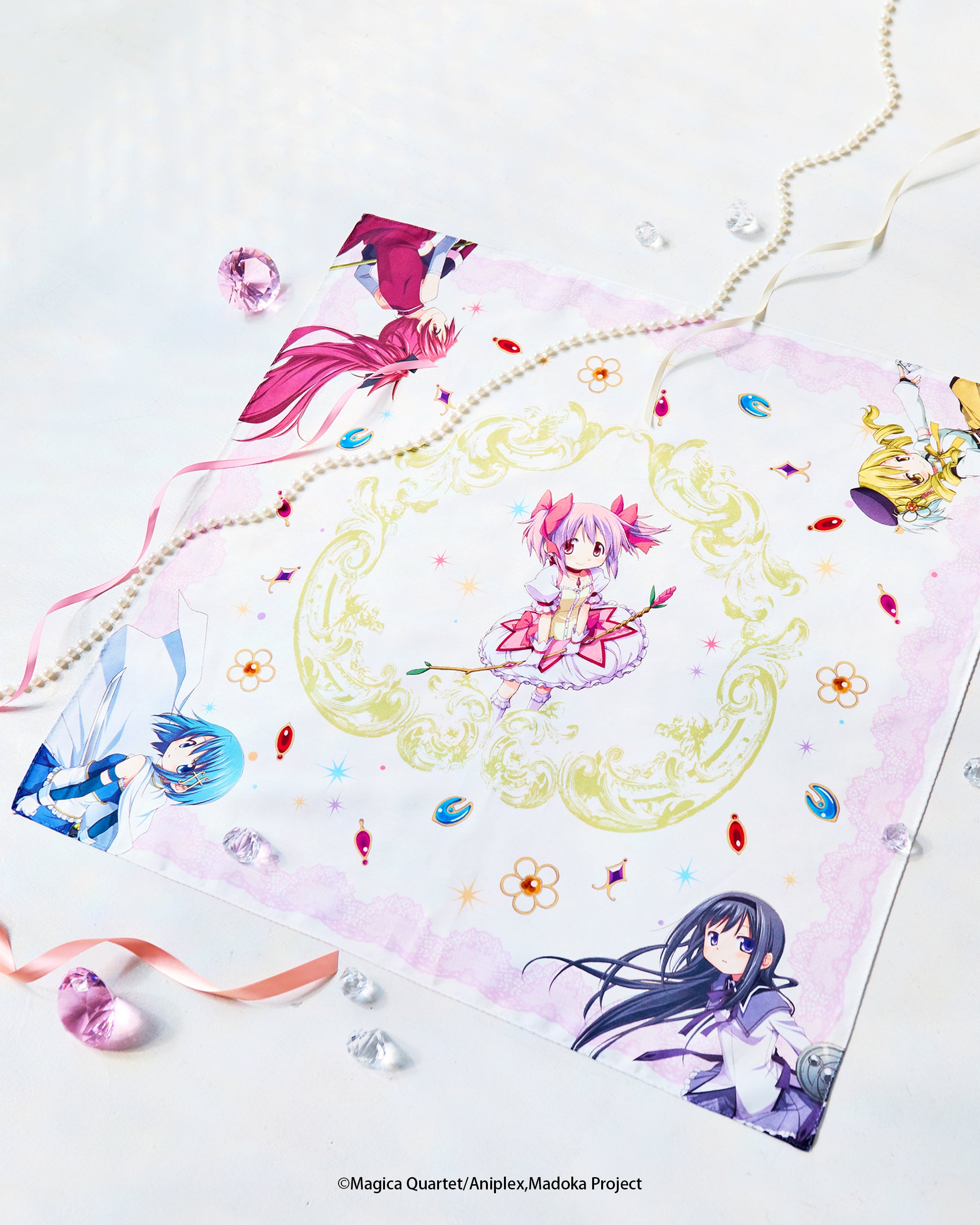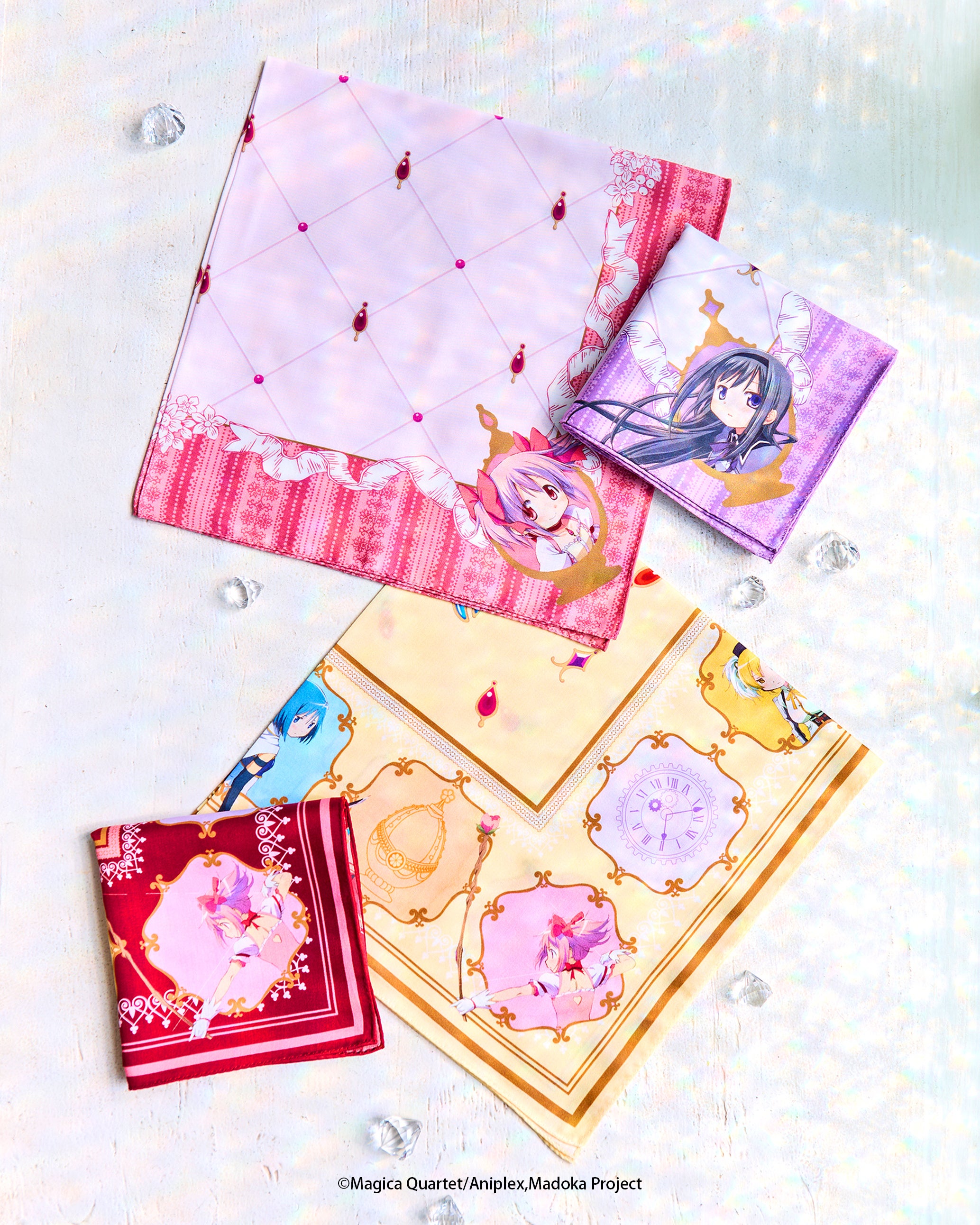 新登場のハンカチは、レースやリボン、ドットなどを組み合わせて、作品の世界観を表現しつつ日常アイテムとして持ち歩きたくなるデザインに仕上げました。