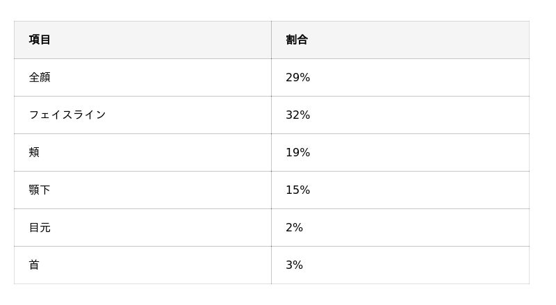医療ハイフを受けた部位について「フェイスライン」という回答が32%で最も多い結果でした。