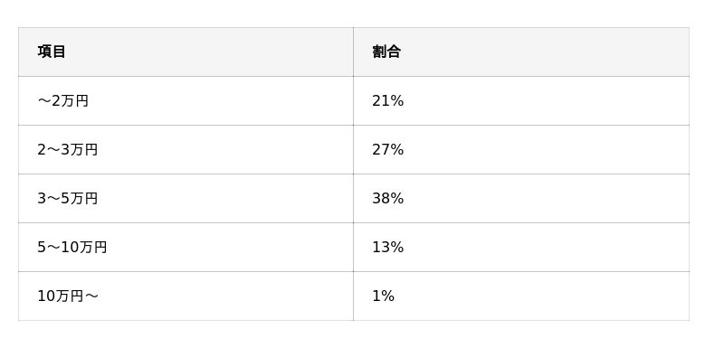 次に「2~3万円」「~2万円」という回答が多く集まり、費用を出来る限り安くしたいという人が多いことがわかります。