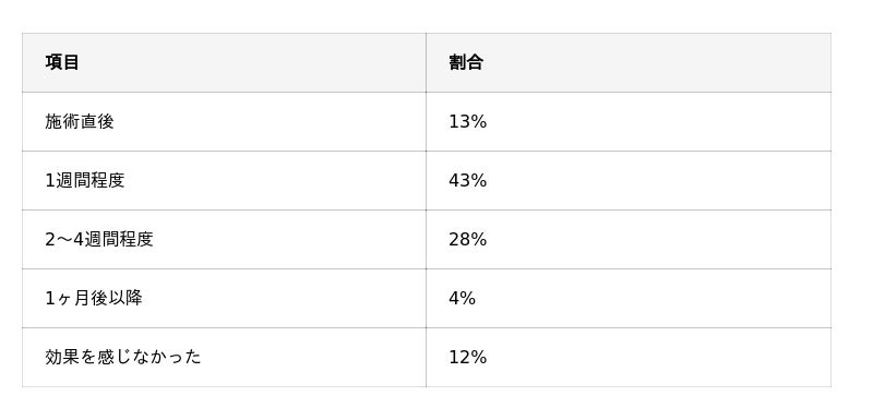 「1週間程度」や「施術直後」という回答も見られたように個人差があることが読み取れます。