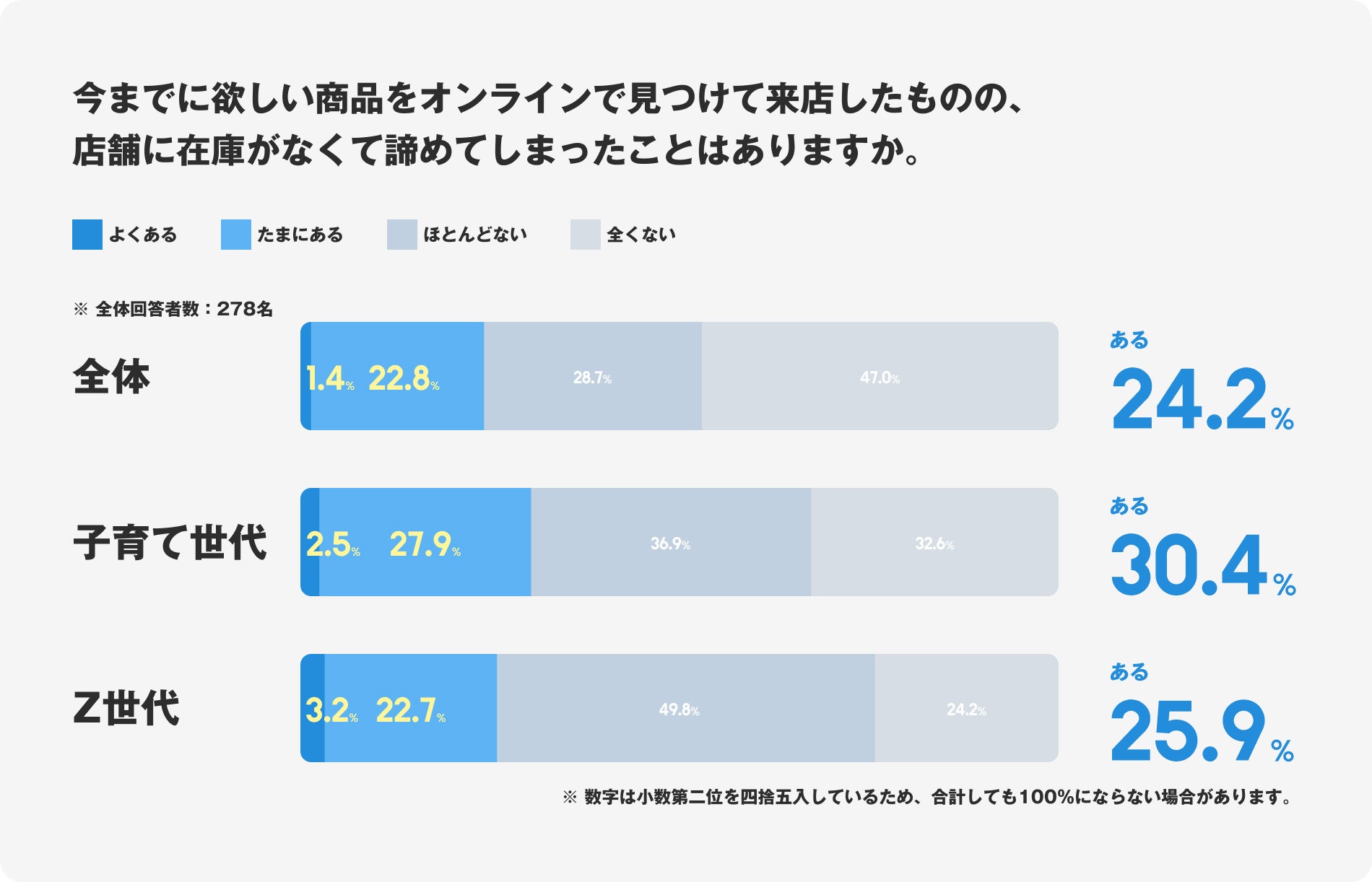 ・店舗に行ったが欠品により購入を諦めた経験がある人は約4人に1人