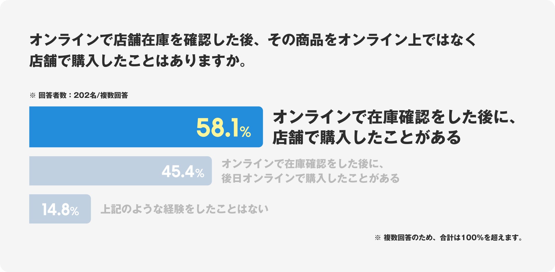 ・事前にオンラインで在庫確認をする人の内、約6割が実際に店舗で商品を購入した経験あり