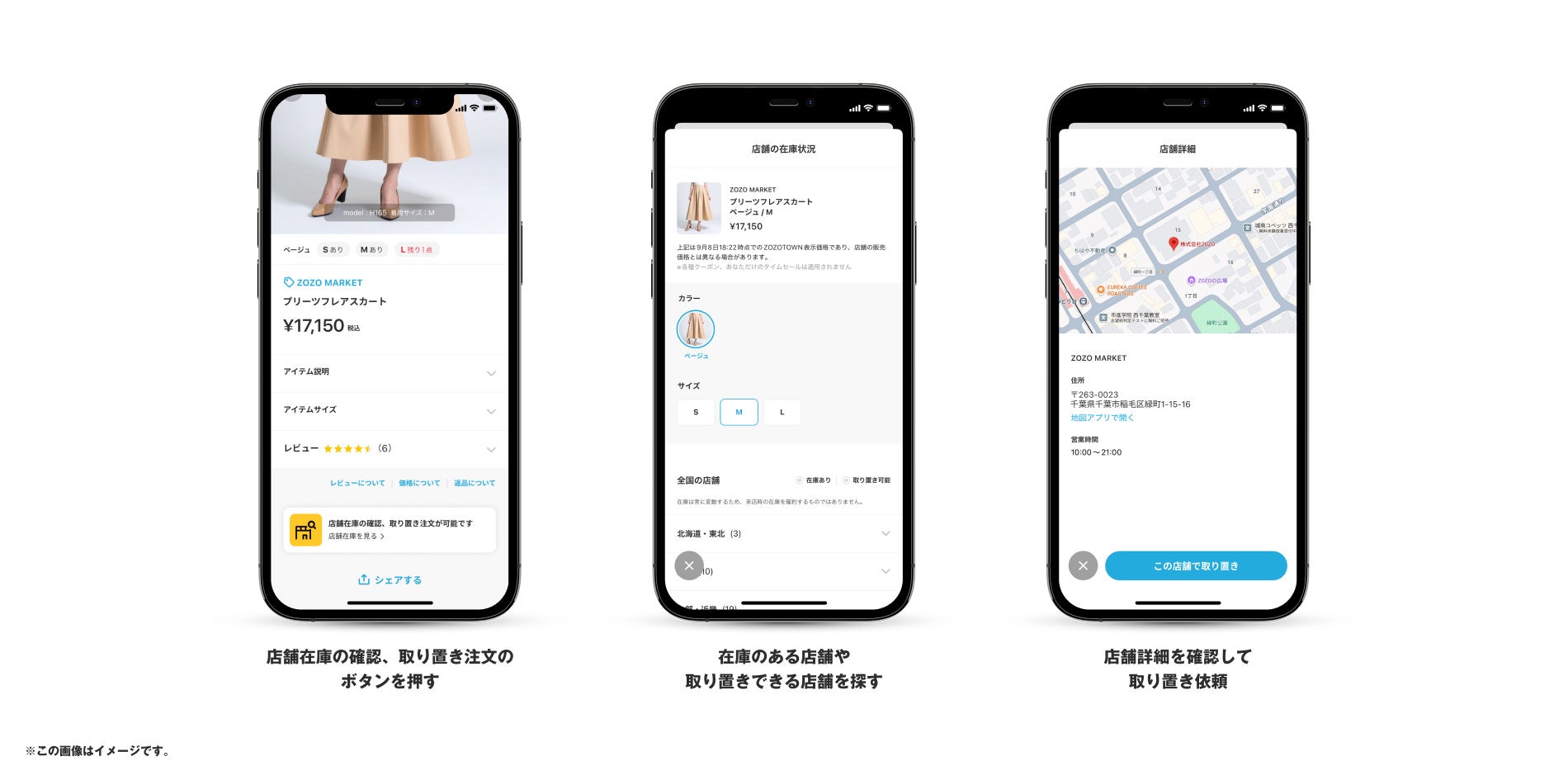 「ブランド実店舗の在庫確認・在庫取り置き」はZOZOTOWN上で店舗の在庫確認、また店舗在庫の取り置きをすることが可能です(※)。「お店に行ったのに欲しい商品がなかった」「時間がなくゆっくり買い物できない」といった買い物のストレスを減らし、より効率的で満足度の高いショッピング体験を提供しています。オンラインの利便性と店舗購入の“いいとこどり”ができるサービスです。