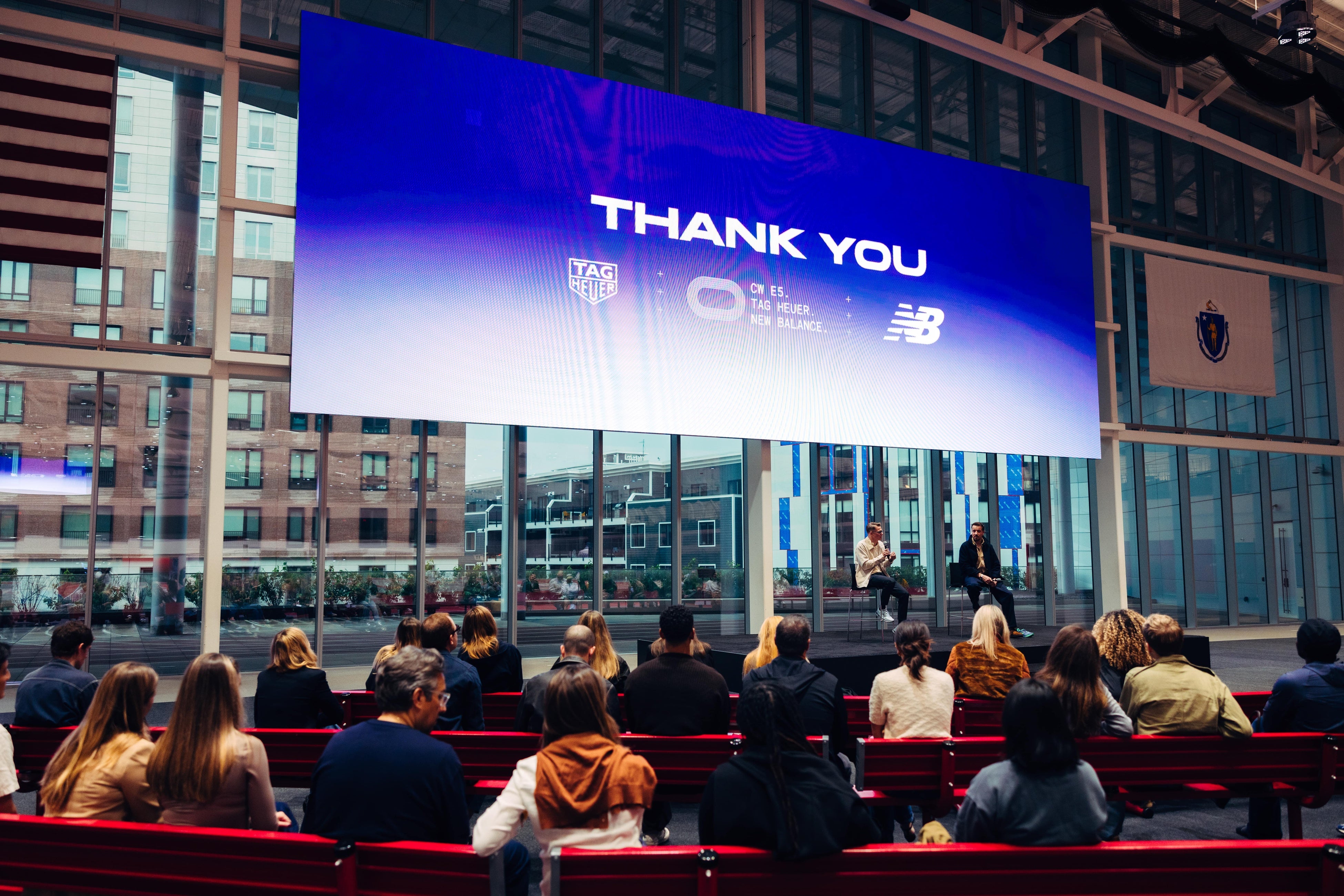 米国、ボストン - 2025年10月9日:スイスの高級時計ブランド、タグ・ホイヤーと、アスレチックイノベーターのニューバランスが、ボストンを代表する施設「The TRACK at New Balance」で、没入型イベント「TAG Heuer Day」を開催しました。本イベントでは、TAG Heuer Connected Calibre E5とスペシャルエディションのランニングシューズ であるTAG Heuer x New Balance FuelCell SC Eliteが披露され、精度、パフォーマンス、そしてデザインを称える両ブランドの哲学が響き合う、活気に満ちた一日となりました。