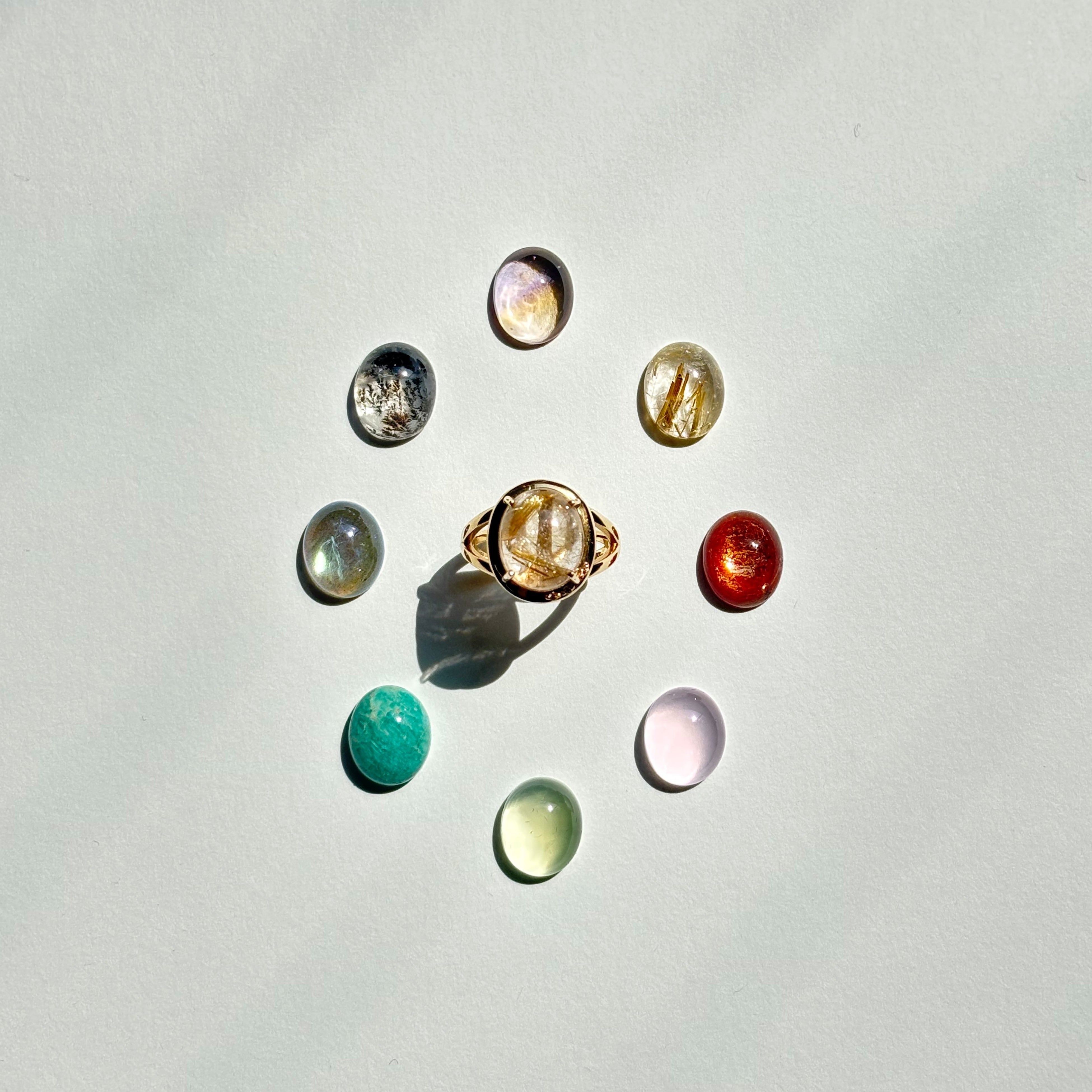 「PLANET Collection」のリング《木星》のメインストーンに、お好きな石と素材を選んでオーダーいただけます。