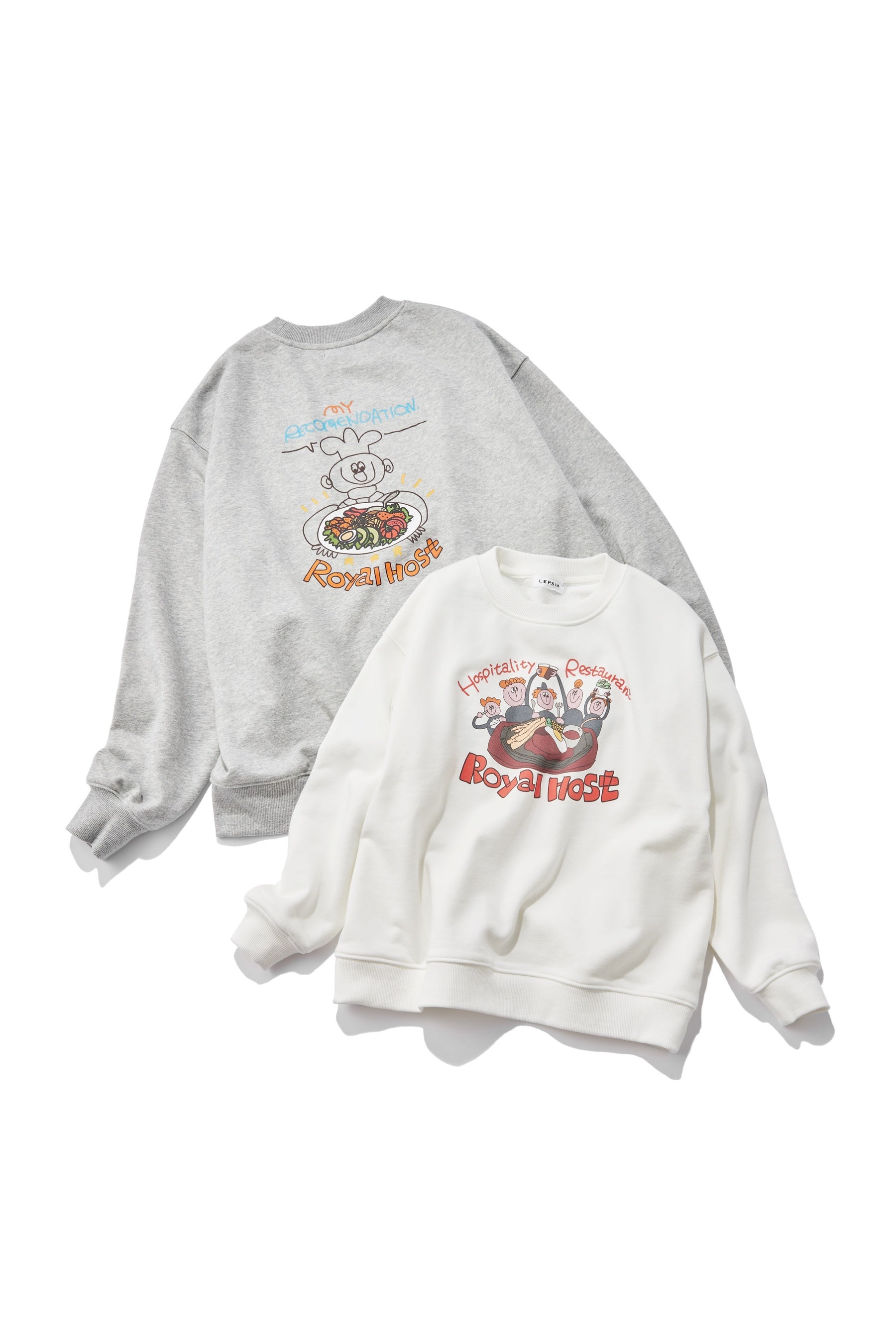 ロイヤルホストで食事を楽しむ様子をオリジナルで書き下ろしたイラストがプリントされたスウェット。キッズサイズも展開し、親子でコーディネートを楽しめます。
