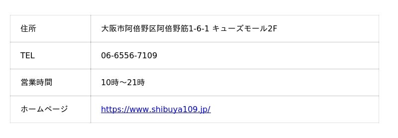 SHIBUYA109阿倍野店 施設情報