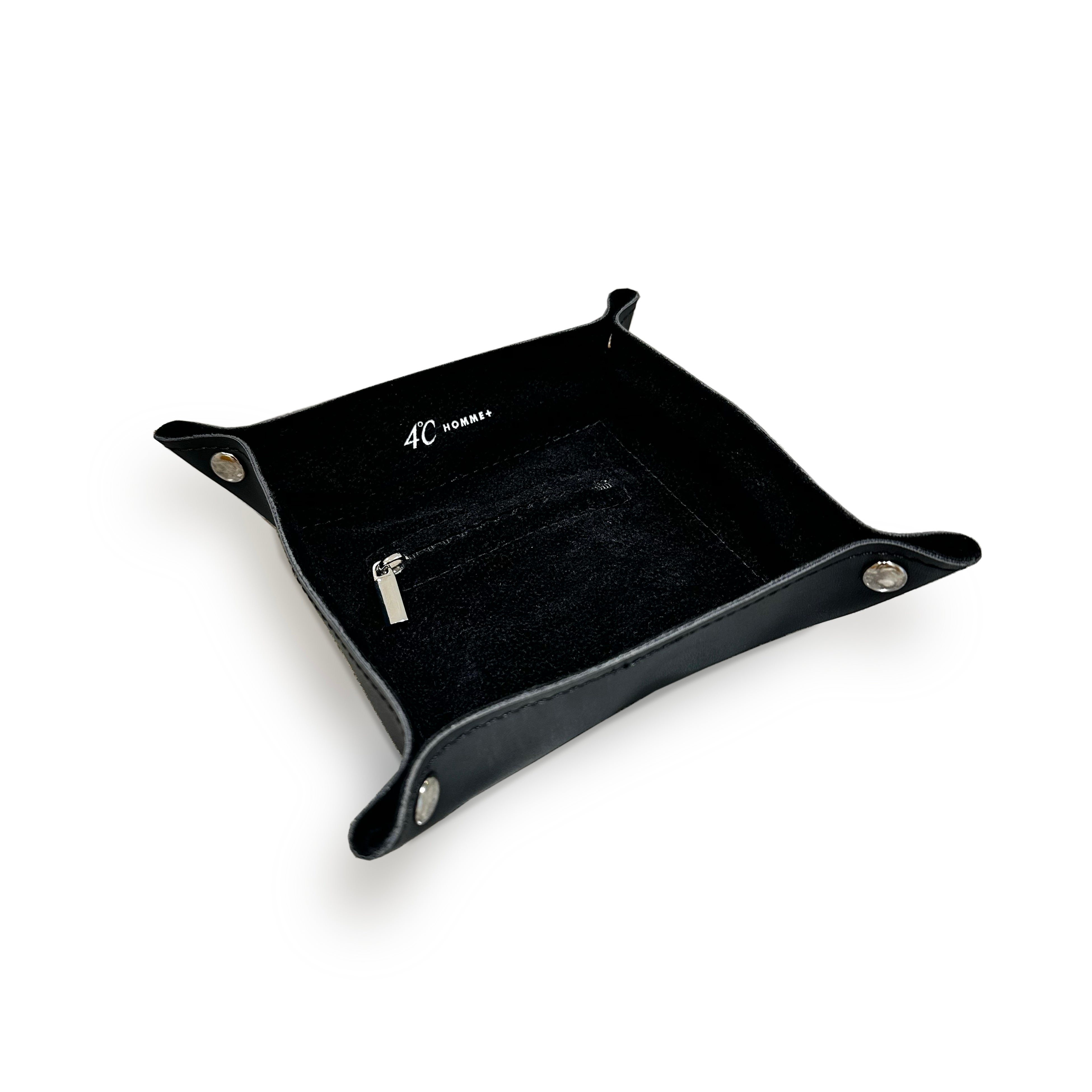 11/14(金)から「Holiday Fair」を開催いたします。期間中、4℃ HOMME+の店舗にて商品をご購入のお客様には、二つ折りにして携帯しやすいジュエリートレーをプレゼント。重厚感のあるブラックカラーがインテリアにもスマートに馴染む他、ジュエリーを収納できるポケットなど、使い勝手の良さにもこだわりました。