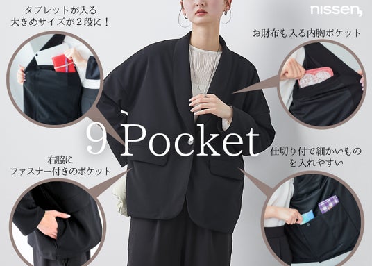 「多ポケット」アウターは、スマートフォンや電子決済の普及により、持ち歩くアイテムが変化しているお客様に対応するため、「私の味方服」から2023年10月に販売開始しました。