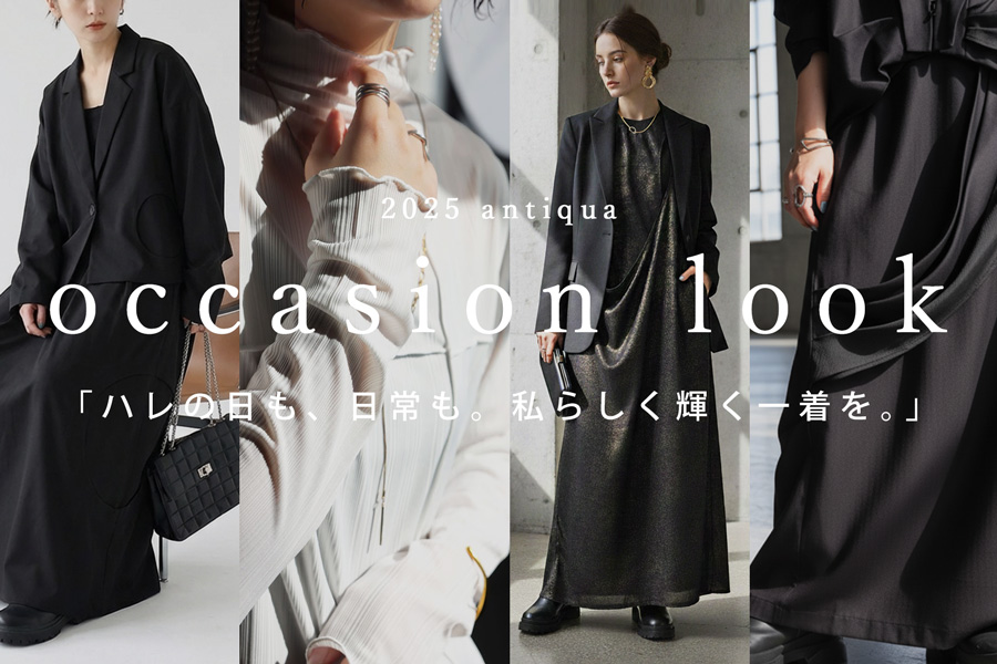おすすめアイテムに加え、antiqua公式サイトでは、季節のイベントや日常のシーンに寄り添った特集を随時更新しています。今の時期だけ楽しめる、期間限定イベント、春の装いを整えるためのオケージョンアイテム特集、気温差の大きい季節に活躍するトップスやライトアウターなど、その時期の気分に寄り添うラインナップを、わかりやすく見つけられるように構成しています。