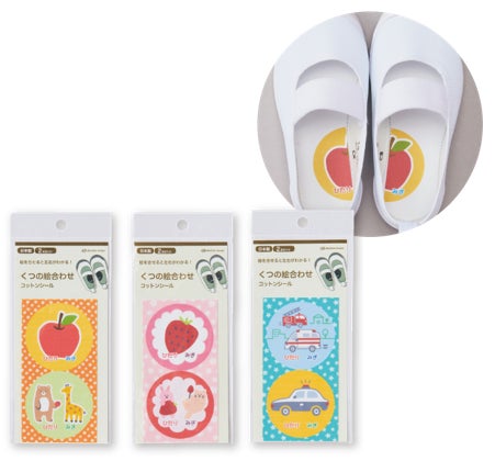 字が読めないお子さまにもくつの左右が分かりやすくなるコットンシールです。はき間違いの防止に。