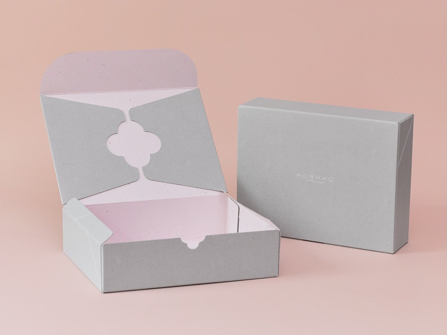 ご要望の多かった、特別なギフトボックスが新登場。フタを開けると、KOBAKOのアイコンであるお花のマークがふんわりと現れ、心まで華やぐギフトボックスです。ボックス内側には、広島平和記念公園に贈られた「折り鶴」を再利用した紙を使用しています。