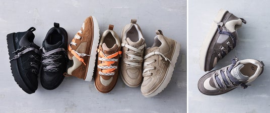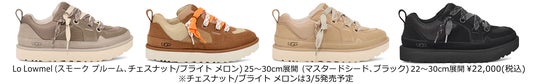 また、3月5日には、スニーカーの履きやすさとスリッパの心地よさを融合させたLo Lowmel(ロー ローメル)に新色のチェスナット/ブライト メロンが登場。アッパーにスエードと再生バリスティックキャンバスメッシュのテクスチャーを採用し、反発性に優れたサトウキビ由来のEVAアウトソールで、UGGならではの心地よさと軽い履き心地をもたらします。メンズサイズだけではなく、レディースサイズやキッズ用も揃っているので、親子コーデや家族コーデも楽しめます。