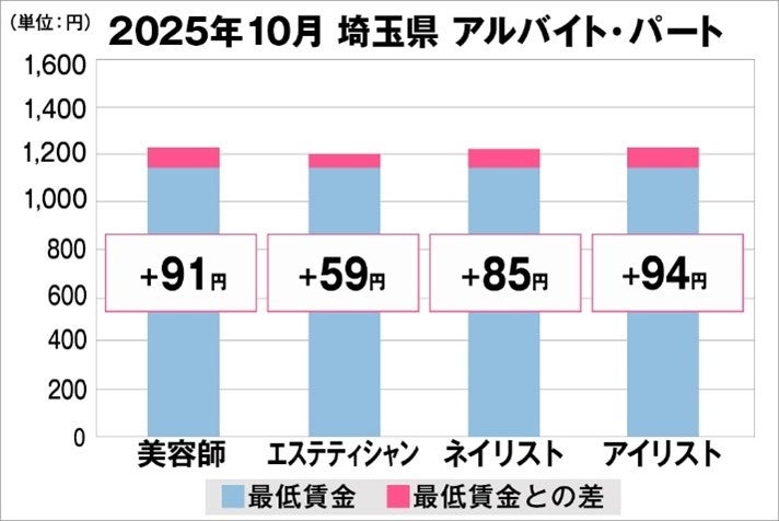 埼玉県の美容業界における採用時給料に関する調査結果(アルバイト・パート)2025年10月美プロ調べ