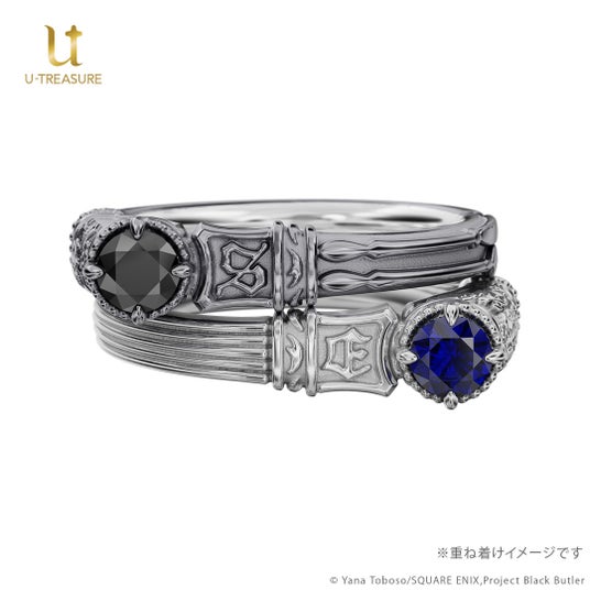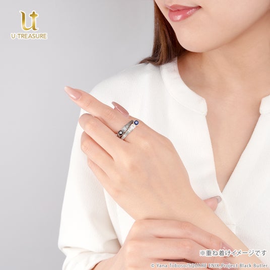このたびの新作は、アニメ『黒執事 -寄宿学校編-』の「セバスチャン・ミカエリス」「シエル・ファントムハイヴ」をモチーフにし、それぞれのイニシャルをあしらったリング(指輪)です。重ね着けもお楽しみいただけるデザインになっており、身に着けても飾って眺めても、作品の世界観を感じられるよう丁寧に仕上げました。