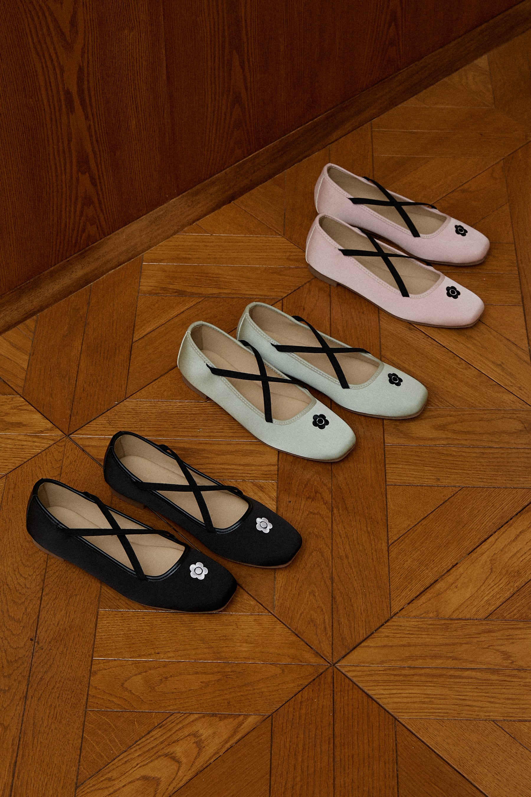 刺繍サテンバレエシューズ¥6,996(taxin)