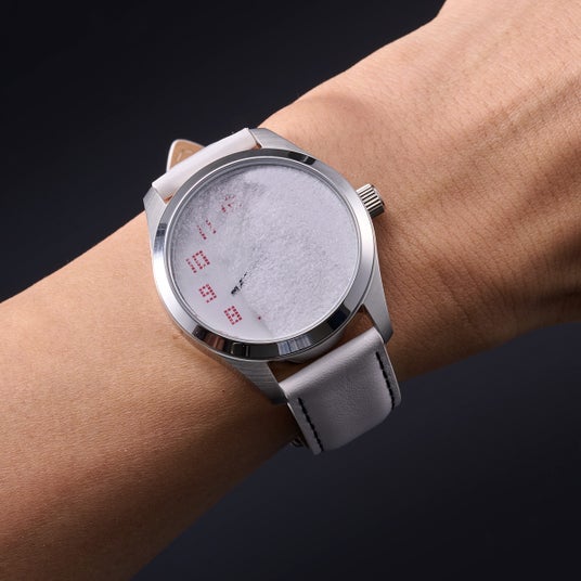 三原:電王の世界観を凝縮し、盤面の約40%に白い砂を閉じ込めたハイパーオシャレ腕時計です。